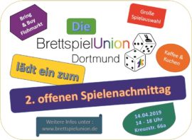 Zum 2. Advent lädt die BrettspielUnion Dortmund zum gemeinsamen Spielen mit der gesamten Familie, bei Kaffee und Kuchen. In gemütlicher Atmosphäre einen entspannten Familiensonntag genießen, nette Leute kennenlernen und neue Gesellschaftsspiele entdecken, das spricht euch an? Dann besucht uns am 09.12.18 von 15:00 – 18:00 Uhr im Gemeindehaus...