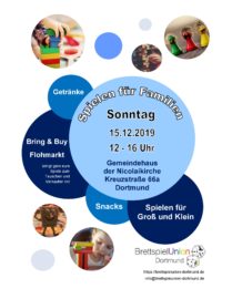 Schlemmen und spielen Am Sonntag lud die BrettspielUnion Dortmund jung bis alt zu einem gemeinsamen Spielen in Dortmund ein. In der Kreuzstraße kamen viele Menschen zusammen, um am 3. Advent gemeinsam zu spielen, zu schlemmen und zu quatschen. Von 12:00 Uhr bis in den späten Nachmittag spielten an...