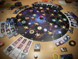 Freitag der 14. Ein Abend der Superlativen! Wir komnten den bisherigen Teilnehmendenrekord auf 23 Verspielte erhöhen, gespielt wurde vom Kinderspiel (Bumpi) bis zu Schwergewichten wie Rising Sun (Beitragsbild) inkl. auspacken und Regelstudium. Die letzten gingen dann erschöpft und glücklich gegen 3:30 Uhr morgens. Es war ein mal wieder...