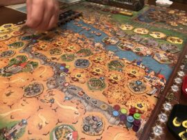 NachSPIELzeit Die Messe war vorbei – das haben wir auch bei der BrUnDo gemerkt, denn an diesem Abend gab es fast nur Neuheiten auf den Tischen, die frischer nicht hätten sein können. Zum Glück kamen auch ganz andere Spiele auf die Tische, wie zum Beispiel ein altes Catan...